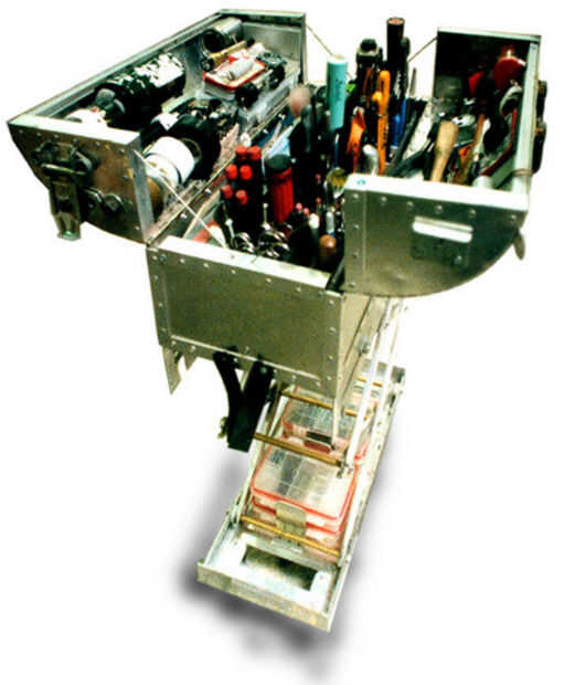 estas cajas de herramientas fueron equipados con ruedas pequeñas que fueron diseñadas para rodar sobre superficies planas y trabajaron muy bien pero el único problema con que era durante mi despliegue en Afganistán había pocos lugares que eran planos