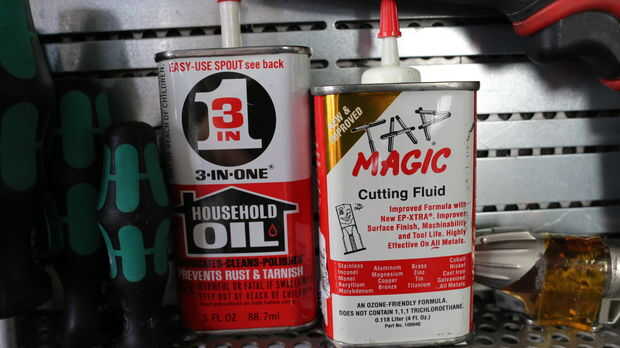 • • Lubricantes • Magia grifo y hogar 3 en 1 aceite estos ayudará con perforación y hacer tapping posible. Tap Magic es mi favorito, ya que funciona bien y huele a canela. El hogar aceite 3 en 1 es ideal para acero y para eliminación de pegatinas y engrasando máquinas. WD-40 es una mentira inútil. • $10 + $10