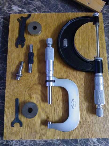 Cortar dos piezas de madera contrachapada para los dos micrómetros. La madera debe ser lo suficientemente grande como para sujetar el micrómetro también pequeño, pero suficiente para que la herramienta se puede quitar con facilidad.