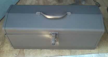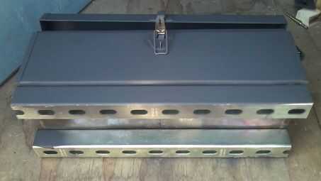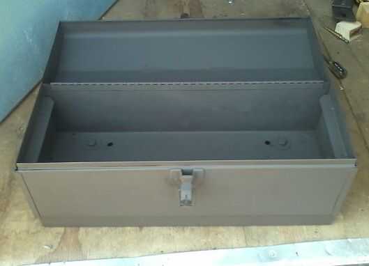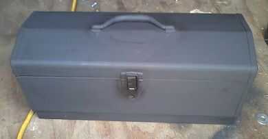 Para la base, utiliza mi portátil Sierra de cinta para cortar el puntal uni a la longitud de la caja de herramientas y había conectado con la tornillería de 3/8". La razón por la que funcionó la longitud de la caja era para que sea más estable que si sólo había hecho pies en la caja.