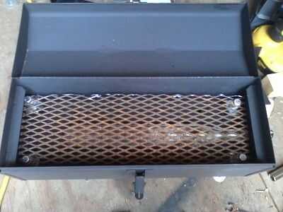 Usando la amoladora angular con un disco de corte, cortar el metal simplemente más pequeño que el interior de la caja así que usted puede entrar y salir si es necesario.