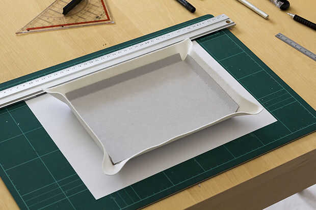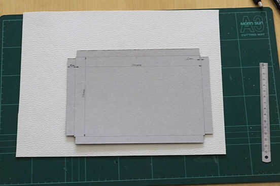 Poner la cartulina precortada en un pedazo de cuero artificial.