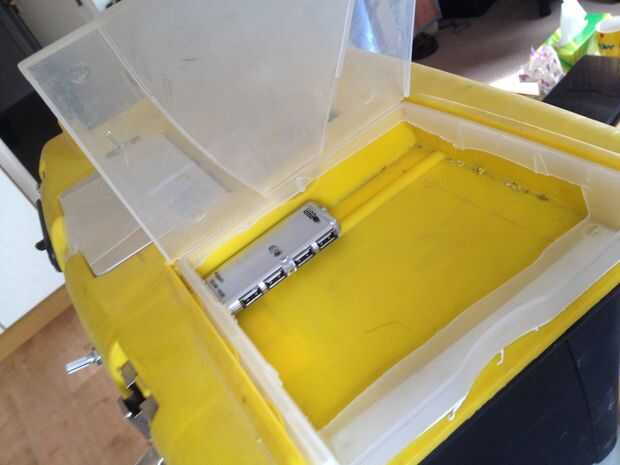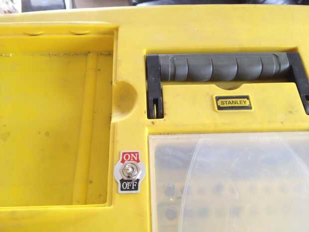 Fui con esta caja de herramientas específicamente, debido a los espacios en los surcos de refuerzo bajo la tapa y los 2 compartimentos en la parte superior, que lo hace un candidato ideal para este proyecto.