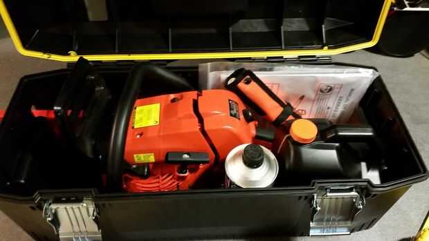 Siendo el nuevo propietario orgulloso de una motosierra (mi primera vez!) Miré en conseguir un caso ir con para almacenar cadenas extras, kit de barra aceite de afilado, aceite, manual, herramientas, etc. de la mezcla. Las ferreterías locales todos tenían propósito construido casos de fabricantes diferentes de la sierra (Stihl, Husqvarna, Oregon) que oscilan entre 40 y 70 dólares. Los casos eran completamente moldeado plástico, incluyendo las bisagras de la tapa, que se desgastan muy fácilmente. Yo quería algo más pesado y no pudo encontrar uno así que construí mi propia por 25 dólares.
