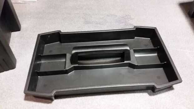 Esta caja de vino con una bandeja de herramienta que no encajaría con la sierra para ponerlo a un lado en mi caja de herramientas de carro cama.
