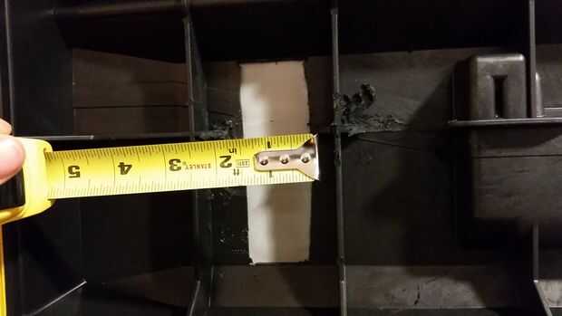 El agujero aquí era 1.5inches ancho por 5inches delantero largo para volver a la tapa. Luego cubrí el agujero con cinta para conductos marca gorila para mantener el agua en la bahía.