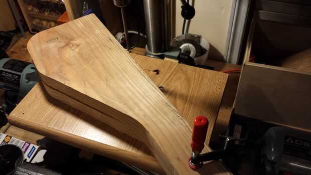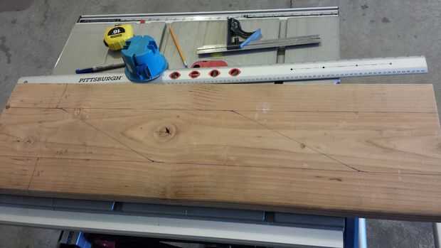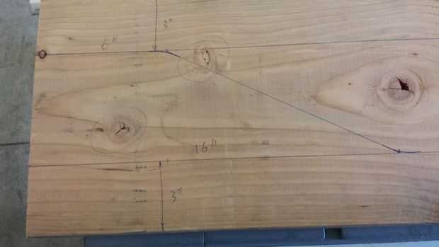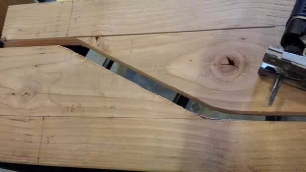 Los detalles en una pieza de 2 x 12 a 38" en los cuadros y sección recta corte en una mesa de sierra y rematar el corte con Sierra de calar a inglete. Llamo a alguna curva en la zona de transición mediante un objeto circular para hacer mejor mirando. Dos tableros deben ser algo idénticos.