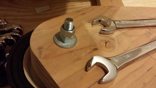 Perfore los agujeros al mismo tiempo para garantizar que en el mismo nivel. Estoy usando 7" rueda, así que los agujeros son 2" desde el borde inferior y 2" del borde posterior, y que dejará de 1.5" de altura cuando reunieron, y es un número muy conveniente, porque durante la actual Asamblea, uso una pieza de 2 x 4 debajo del soporte establecerá la altura correcta para el montaje. También puse un 2" Radio circular alrededor de la esquina.