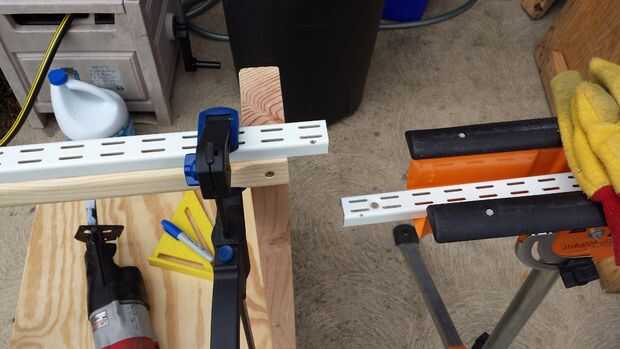 Cortar dos carriles de montaje, asegúrese de moler hacia fuera las rebabas y el borde de la arena suave. Montar en el carro, y corta el estante con el tamaño de su especificación, el mío es 20" de ancho.