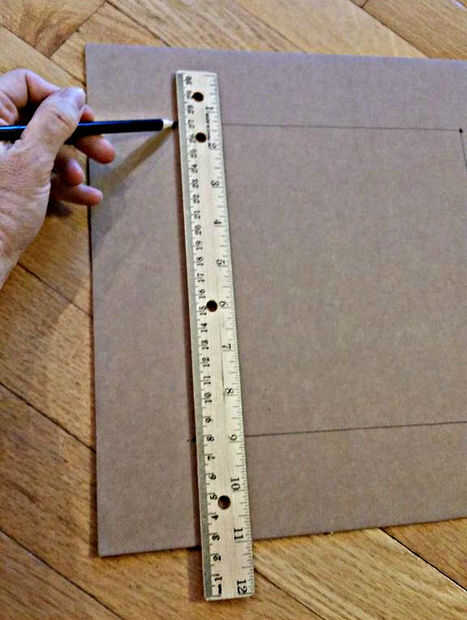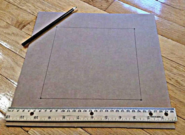 • Esto creará un cuadrado (o rectángulo-dependiendo de la forma de la pieza de cartón) dibujado en el centro de la pieza de cartón.