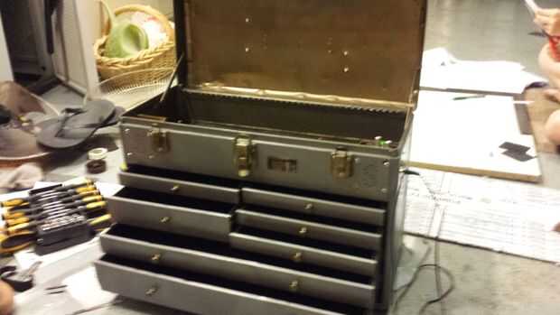Clava en los seguros que había quitado anteriormente, tomó la cinta de la empuñadura y utiliza super pegamento para pegamento de la etiqueta de "Campeón" en. He utilizado lubricante multiuso para hacer los cajones Deslice mejor. Ordenados y limpié mi nuevas herramientas y poner en los cajones. Mientras clasificaban, llegué a escuchar la música se juega a través de los altavoces que tenia instalado. Me enteré de que cerrar los aumentos tapa la intensidad del bajo mientras dejándolo abierto tiene un sonido único.
