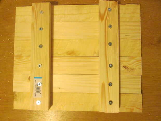 Para cada uno de los 2 lados, fíjelos juntos 6 tablones de 356mm con 2 tablones de 280mm, como se muestra.