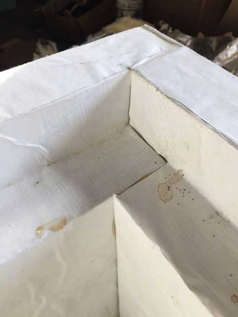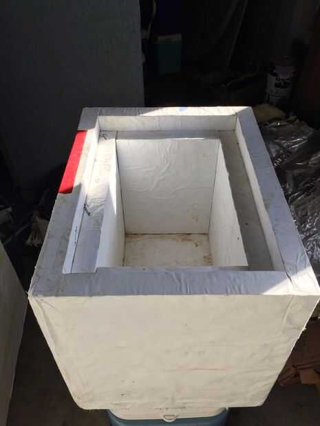 Por ahora usted ha notado que cada pared es una completa 4" de grosor. Así que cada pared es una pila de dos partes. De las fotos, se puede ver que cuidadosamente envuelto cada pieza de una manera sistemática para cubrir todos los bordes. Usé el cemento de contacto para sujetar la envoltura de la casa de "Tyvek". Esto es caro, pero es realmente difícil, blanco brillante y tolerante del agua. Con un pequeño pensamiento, estoy seguro que encontrarás una buena manera para envolver la caja.