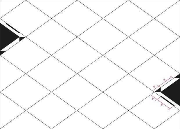Las áreas negras en los dos triángulos se deben recortar. Las dimensiones de X e Y no son realmente importantes; como mucho todos los x son iguales; a la misma para la Y En mi modelo, hice la altura de los labios 7mm.
