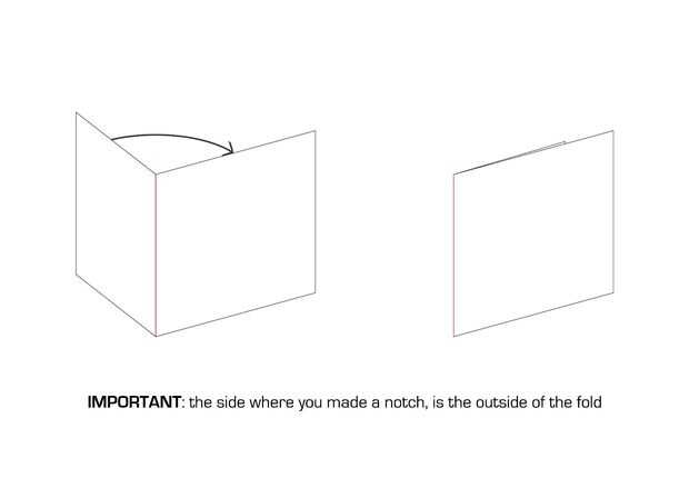 Ahora, dobla cada línea que recortados. IMPORTANTE: La muesca es fuera de la tapa!