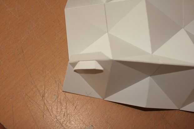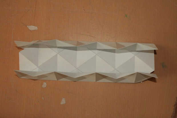 Cuando te retiras las dos líneas horizontales, en cada lado los labios vienen juntos. Ahora poner a través de la abertura y fíjelos por desplegar las puntas.