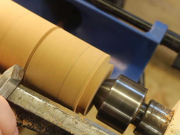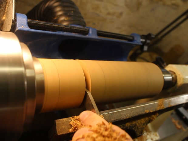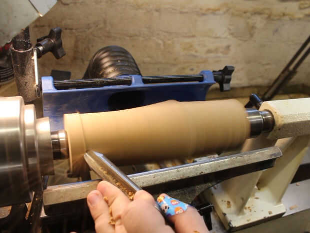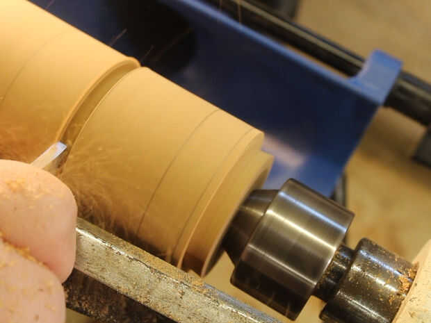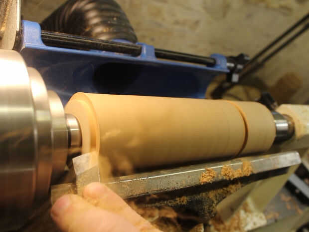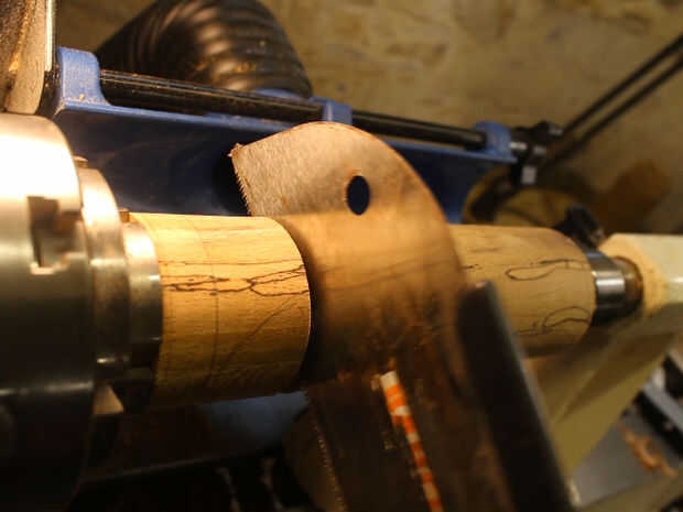 Giré la madera redonda y creó un punto de sujeción en cada extremo. (Este es un punto donde el portabrocas puede agarrar a la madera)