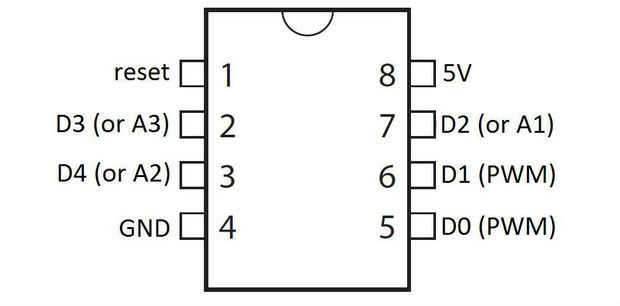 Sugerencia: El punto en la esquina del ATtiny muestra el primer pin.