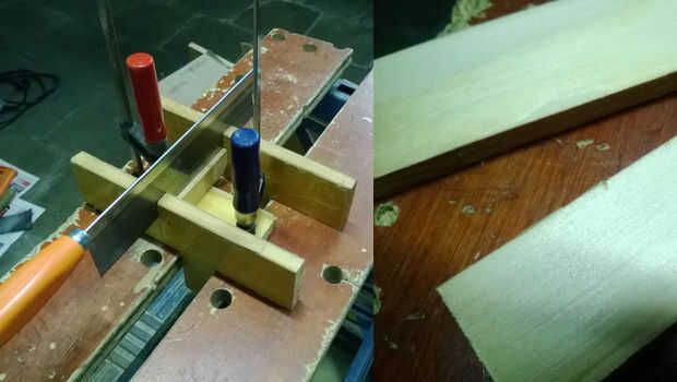 Si la pieza de trabajo es demasiado pequeño para añadir abrazaderas, todavía puede corregir su posición por drásticas extras bloques al lado de la pieza en su lugar, como se puede ver en la segunda foto. - Una vez que tienes la pieza de trabajo en posición, seguir adelante y hacer corte! Si todo va bien, apenas tienes que poner todas las fuerzas en la sierra y el corte resultante debe ser agradable y suave. casi no requiere lijado.