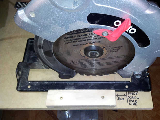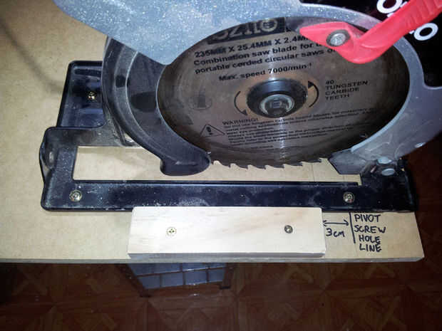 Perfore previamente cada agujero marcado, sustituir la sierra y poner tornillos en el lugar. Asegúrese de que utiliza tornillos con cabeza de fondo plano para dar mejor manteniendo contacto con la sierra circular.