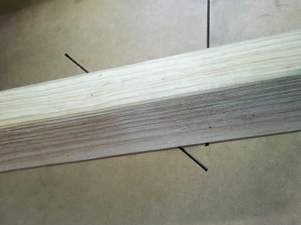 Como también se puede ver en la primera foto si os adjunto el segundo soporte de pino hasta el borde lateral de la hoja MDF sería inútil como una cerca para cortar la contra. El material contra el pino no se reduciría. Para solucionarlo opté por montar el segundo soporte de pino más, lo que significa que debía también ser cortado por la hoja de sierra. Elegí lo que parecía para ser una posición lo suficientemente buena para cortar a través de la mayoría de las cosas más delgadas que el apoyo su auto (o máximo la profundidad de mi sierra de corte) que pasó a ser cuando la línea de corte de hundiendo la hoja a través de MDF sólo mostró en la parte exterior de la viga de pino.