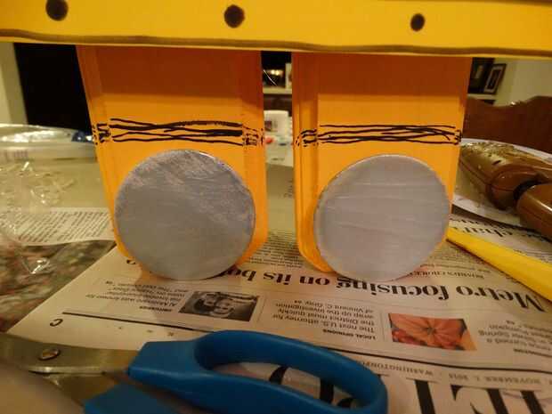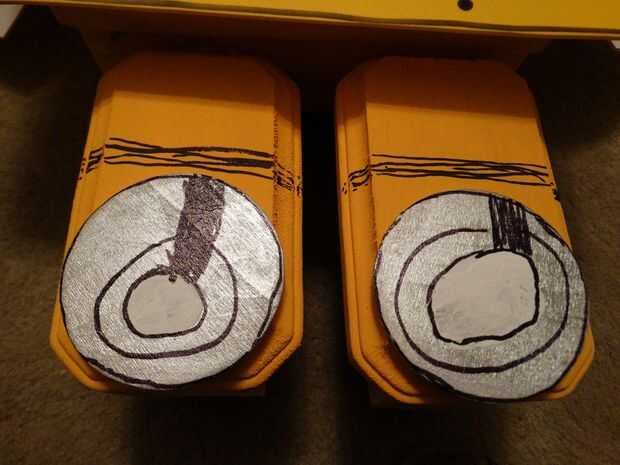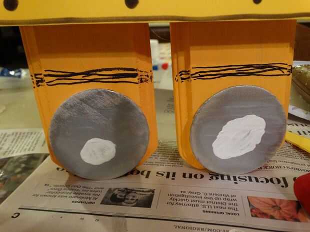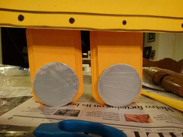 círculos de pintura blanca en las ruedas gris. Dejar secar totalmente