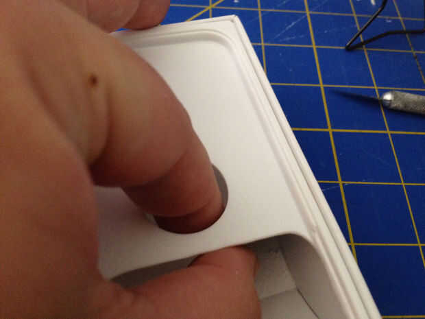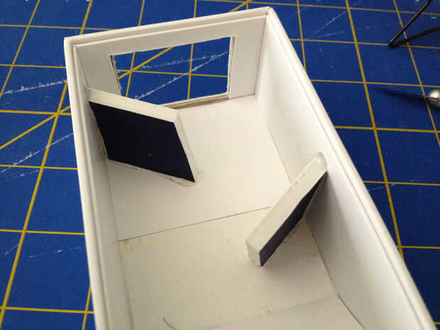 3. antes de que pegue en el tope inferior, prueba de la colocación por acoplamiento seco y colocar el muro en la caja interna. Asegúrese de que la parte inferior del parachoques no sobresalga hacia la salida de dados. Quite la pared y marque su posición prevista.
