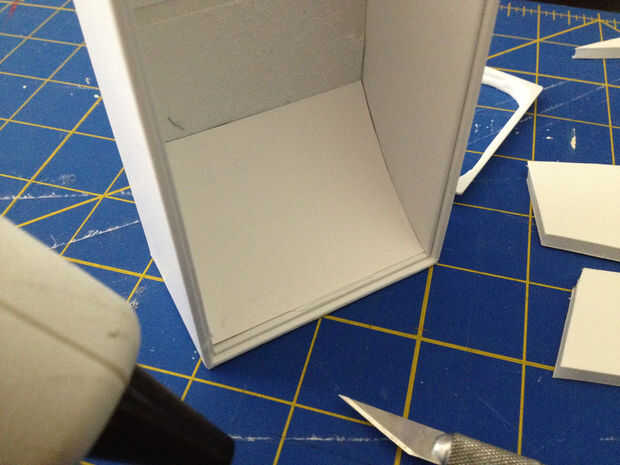 1. creo que es más fácil comenzar con la rampa. Poner las gotas de pegamento en los bordes superior e inferior de la rampa. A continuación, presione en su lugar.
