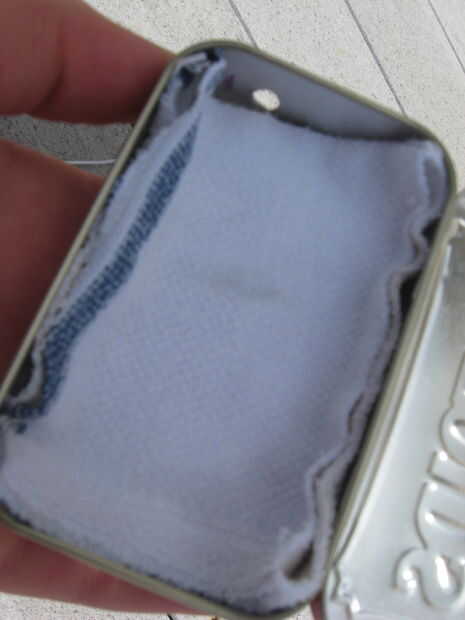 Para crear el relleno, cortar un calcetín viejo para caber el interior de la caja como se muestra en la imagen.