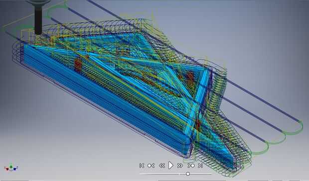 Inventor es una herramienta increíble para hacer CAM, pero todavía requiere estrategia un poco. Después de crear una frente a ruta, hice una 1" 3D adaptable trayectoria de herramienta para eliminar la mayoría del material y crear un hombro en el diseño. Entonces me puse 1/4 punta plana molino pasa a los bolsillos, y 1/8" pasa a la final los rebajos y hacer las incrustaciones. Para el contorneado final opté por el molino de extremo de 1/2" y ha añadido fichas en fácil-a-arena caras. Es cinco herramientas en total. He visto la simulación una y otra vez para asegurarse de que mis decisiones sentido y que la parte que veía lo que quería. He guardado al. STL de la parte resultante para hacer mi sujeción mapa.