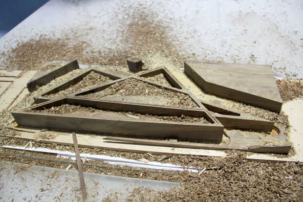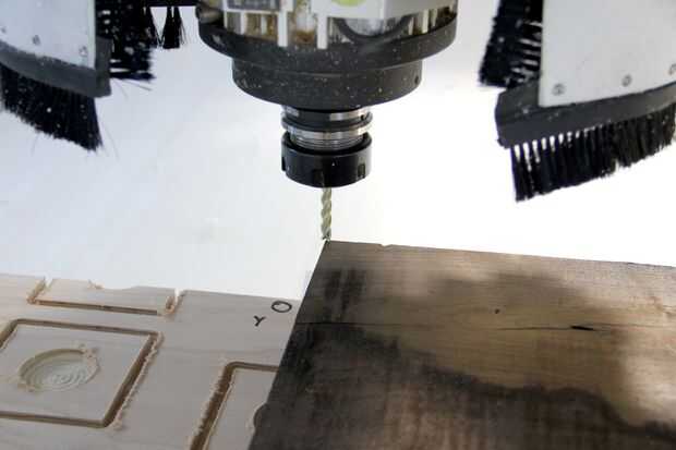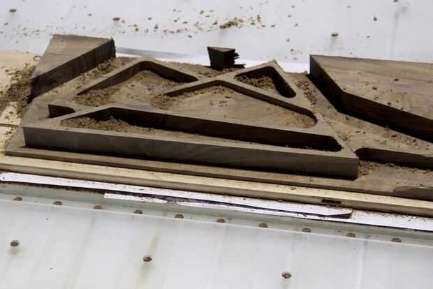 El primer camino adaptativo quitado la mayor parte del material, aproximadamente un tercio del proyecto tiempo general y revelando la forma principal del diseño. Después de cada sección de código de G me barrió las virutas e inspeccionar la parte.
