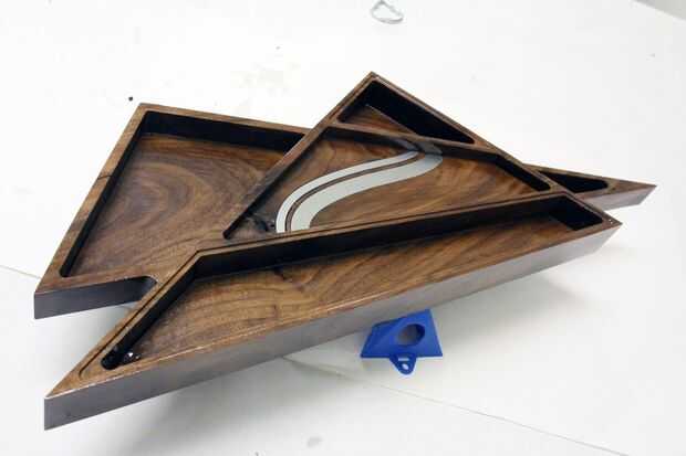 Lija en los lugares donde había mastican la madera y la herramienta perdida marcas el router, pero dejó el contorno pisadas en los fondos de los bolsillos. Conseguir en el interior las esquinas de los bolsillos era molesto hasta que encontré una calza para utilizar como mi bloque de lijado.
