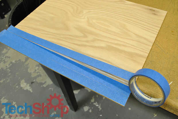 Antes de poner la pieza en la cama láser, me gusta mina enmascara apagado con alguna cinta de pintor en ambos lados para minimizar las quemaduras del láser. Esto le da un aspecto más limpio.