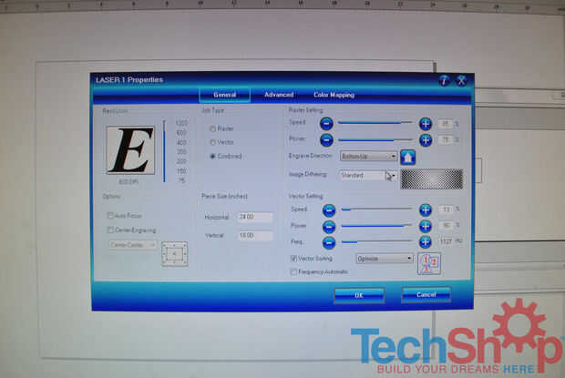 Estos son los ajustes que utilicé para un láser de epilog de 60 vatios.