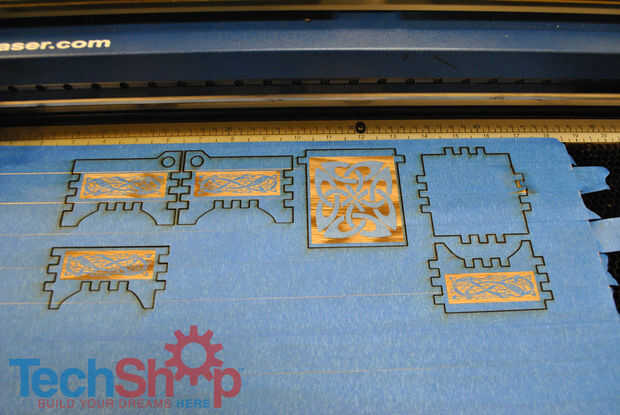 láser corta un chasis de la computadora a su especificación.Puede utilizar los archivos de diseño de Outfab para un motor de arranque y modificarlos para satisfacer su necesidad.Lo que necesitas es 1/4 de madera contrachapada y 1/4 en acrílico, tuerc