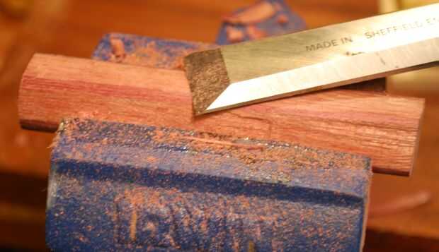 • Para replicar la forma hexagonal del palo, 3 1/2" espiga en tornillo de banco y cincel por tener seis incluso lados.