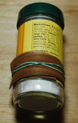 • Aplicar una capa fina de pegamento de madera a un lado y abrigo alrededor de la espiga/tarro/etc. (yo usé un taco, tarro de la especia y una botella de esmalte de uñas)