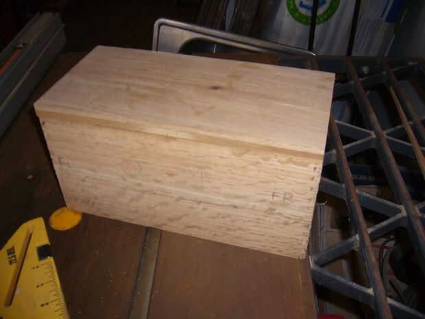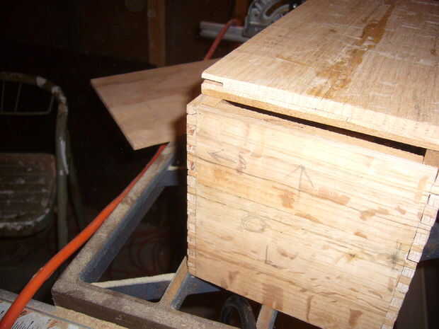 Ahora que todo esto parte de la caja se hizo finalmente fue tiempo para pegar todo junto. Cuidadosamente pegado todas las articulaciones del dedo y afianzado con abrazadera todos cuatro lados juntos .once tuvieron tiempo suficiente para secar necesitaba cortar un conejo en la parte superior y parte inferior las piezas para que se deslicen hacia abajo dentro de la caja. Tomé la parte superior e inferiores a la mesa de sierra .stood las piezas en extremo (uno a la vez) y ajustar el guía y hoja guía al dejar sobre un 1/8 de pulgada de roble que muestra (cuando el cuadro fue poner juntos). He apoyado al lado de cedro tableros abajo y hecho una nota de corte que me dejó con mi conejo común que ajuste muy bien abajo en la parte superior e inferior de la caja. Es tiempo entonces para pegar la parte superior e inferior en .carefully pegado a lo largo de la Junta de conejo que sólo había hecho. Yo firmemente sujeta la parte superior e inferior en su lugar y permite que se seque