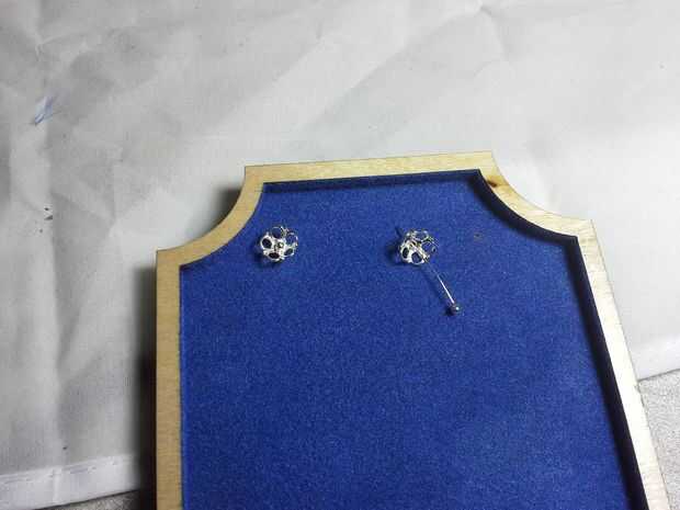 La última cosa que necesitamos hacer es añadir la joyería. Para poder añadir joyas a las alas, necesitamos instalar algún tipo de titulares en ellos. Decidí colocar dos asientos de pendientes en cada ala, así que fue a Michael (la tienda de artesanía) y encontré algunos pasadores plata-revestida con los titulares. Entonces me di cuenta cómo quería disponer los pendientes en las alas y he instalado a los titulares. Utilicé una herramienta giratoria con una prensa del taladro para perforar los orificios de 1mm para los titulares. Si puedes calcular el diseño de las alas antes de recortar las partes, sólo podría tener la cortadora laser cortó los agujeros.