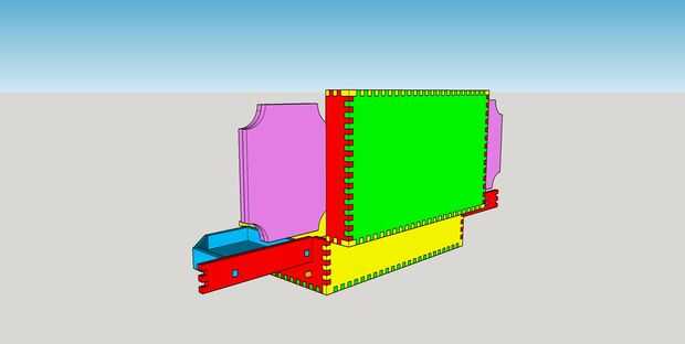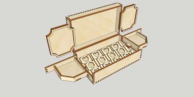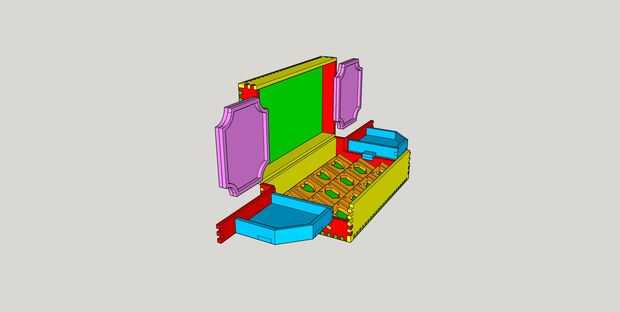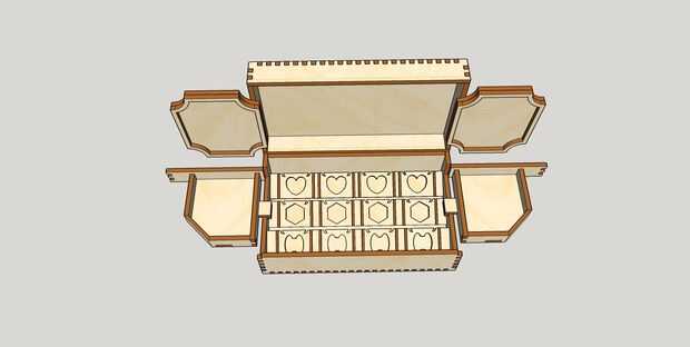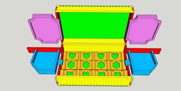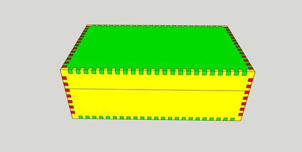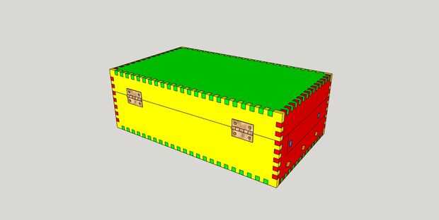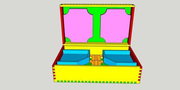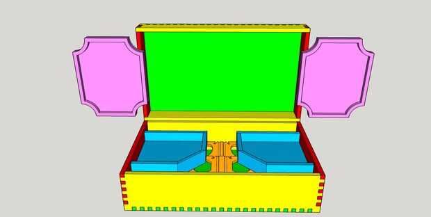 Finalmente desechado esa idea y luego Diseñé y cortar nuevos paneles laterales que tenía las bisagras en el exterior. La única razón que podría justificar poner las bisagras en la parte exterior de la caja era porque yo no estaba haciendo una bloqueo caja de joyería. Aún así, esa parte del proyecto todavía errores me. ;)