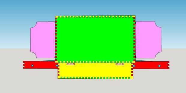 Originalmente tenía las bisagras para las alas dentro de la caja con sólo la pequeña parte posterior de la bisagra sobresale, pero me encontré con problemas de poder fijar las bisagras firmemente bastante con solo 5mm de la madera contrachapada para hundir los tornillos pequeños en. Además de eso, son grabados en el lado externo de las alas que tenía realmente mucho menos de 5mm de espesor como algunos de los diseños graban a mitad de camino en la madera contrachapada.
