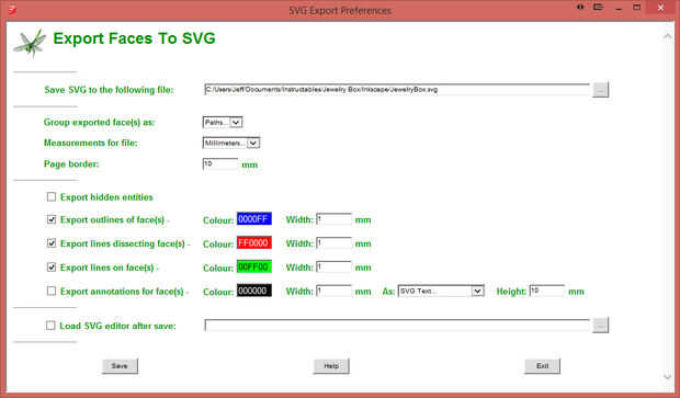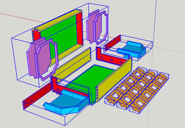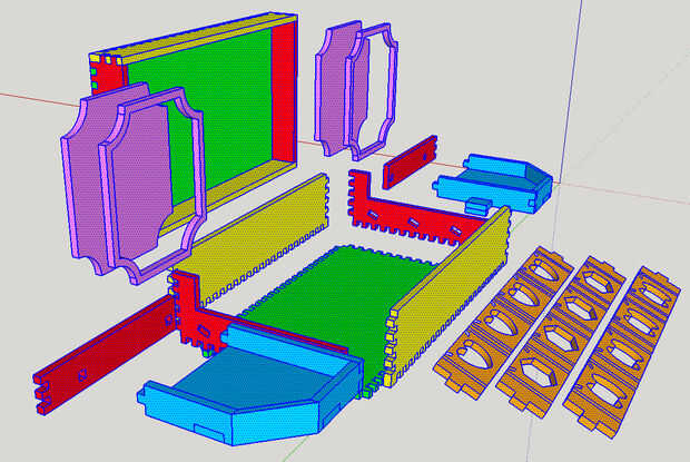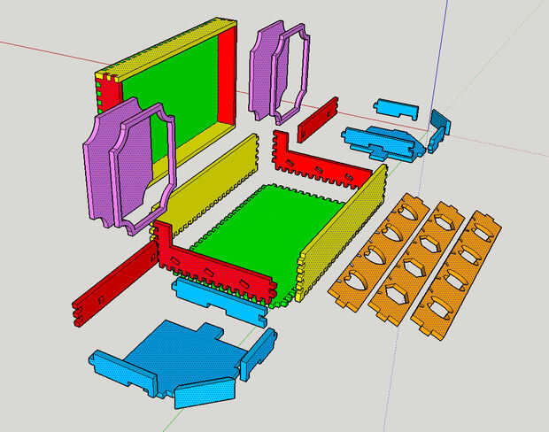 Después de que tenemos la estructura física de la caja diseñada en Sketchup, necesitamos de alguna manera puerto el existente modelo 3D sobre Inkscape en piezas en 2D. Viendo como el cortador del laser es más o menos una máquina de corte 2D (grabados 3D se pueden hacer), realmente no le importa el espesor del material que estamos cortando. Una vez que puerto el 2D vector y raster de datos al software fresas láser, simplemente ajustamos la velocidad y la potencia de corte láser para obtener la profundidad deseada grabado o corte completo a través de. Para este paso, sólo vamos a centrar en conseguir los archivos de CAD a nuestro software de vectores.