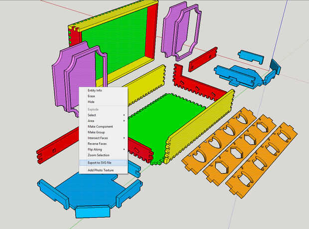- Cada rostro que se ha seleccionado será el contorno de la parte que corta el láser. Una vez seleccionadas todas las caras necesarias, haga clic en uno de los rostros y seleccione la opción "Exportar a archivo SVG". (Foto #6)