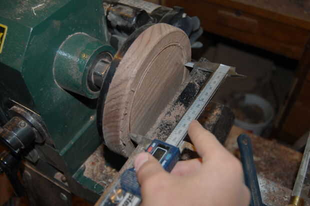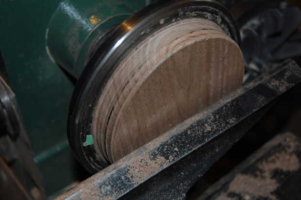 La tapa es casi tan simple como fondo de la caja, excepto la tapa no tiene tennon. Comienzan con el mismo blanco de tamaño nuez como hiciste la parte inferior. Tomar el espacio en blanco abajo para ronda. Luego, utilizando un calibrador a vernier mientras se marca con un escoplo, corte una línea para marcar el diámetro de la barbilla en el anillo segmentado. Luego separe el resto de la nuez fuera de la línea. Asegúrese de que la pieza no es cónico. Entonces, forma la tapa quieras. Una vez hecho esto, presiona el centro vivo en la superficie de la tapa para marcar el centro.