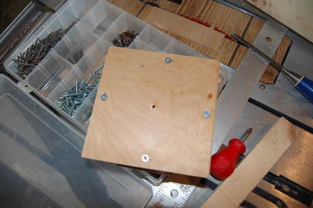Juegos de palabras son divertidos, no es así? De todos modos, comenzar apretando el cuadrado al octógono utilizando los agujeros pretaladrados y tornillos de 1" de madera contrachapada. Tornillos cabeza de pan funcionan mejor, pero cuando la ferretería está cerrada, a veces sólo tienes que ir con tornillos de cabeza de cono. A continuación, poner un tornillo a través de la madera contrachapada en el 2 x 4 (en el lado opuesto del lado con el octágono). Ahora pre taladre dos orificios más (una a cada lado del tornillo de centro) y conducir en dos tornillos más. Ahora usted está finalmente listo para comenzar a girar. Chuck 2 x 4 cuadrado en su tirada del torno (con la madera contrachapada y octógono conectado de grueso).