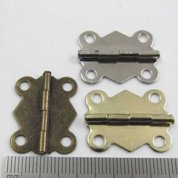 2 x plateado miniatura bisagras 19x24mm (fractura de latón)