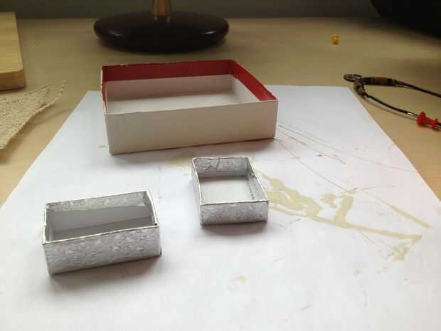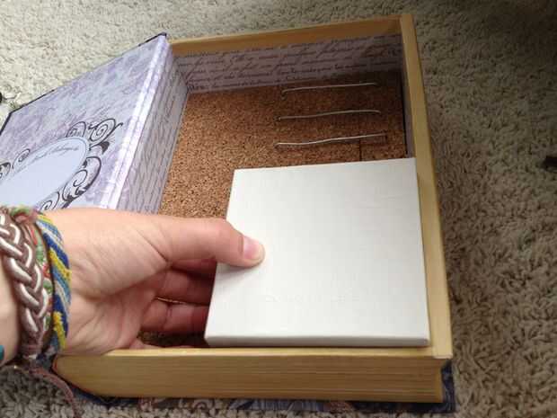 Tomar las cajas extras y pintar si quieres emparejar el color. Uso adhesivo plazas para colocar las cajas en el corcho. Quería mantener las tapas así porque esto impide que la joyería caerse si dar vuelta la caja boca abajo. Cuando Colocación Asegúrese de que tiene espacio para las tapas así.