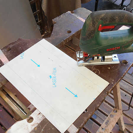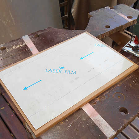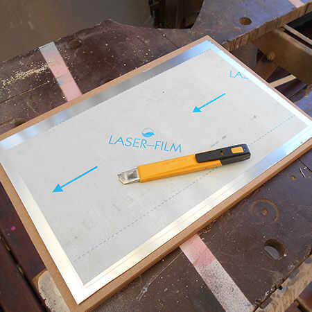 3. use un cuchillo para cortar y despegar un ancho de película de la hoja (si hay alguno) que es tan amplia como el pino que le moldea será asociar más tarde. No retire el protector como esto evitar que la superficie sea rasguñada.