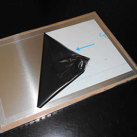 10. ahora usted puede pelar lejos la cinta en la hoja de aluminio sobre la tapa para hacer el grabado.