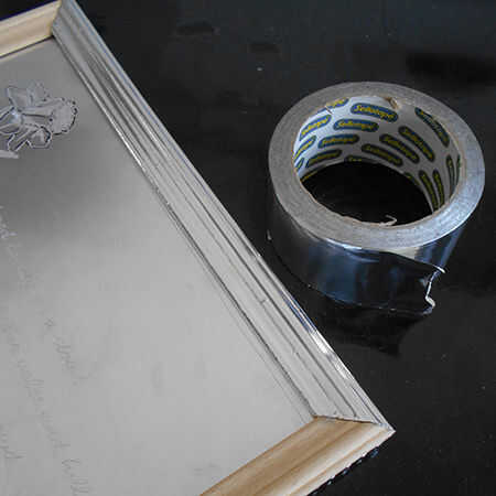 13. después de cortar y pegar el marco en la tapa, esto fue cubierto con cinta de aluminio. Se podría aplicar la cinta al marco antes de pegar hacia abajo.